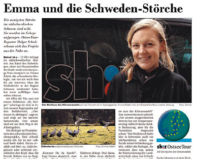 >> Zeitungsartikel aus dem Jahr 2009 über Emma Adahl und das schwedische Weissstorchprojekt